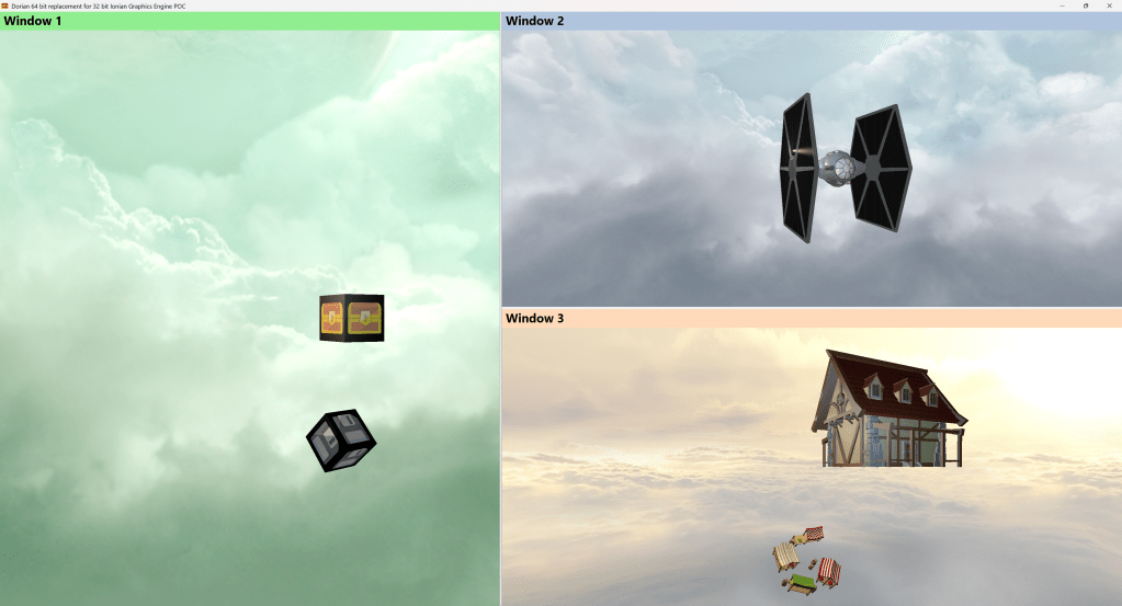 Ionian’s biggest issue is that it can only be 32 bit, but Microsoft’s latest development tools only allow for 64 bit development – as a result I have to write a brand new graphics engine – in this case it is called Dorian .