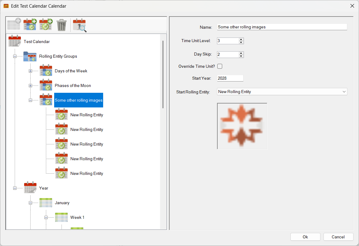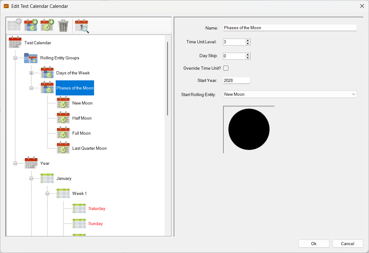 In addition, multiple rolling entities can now be added. In the above screenshot we are just using one set of rolling entities called ‘Days of the Week’. But what if we also added phases of the moon?