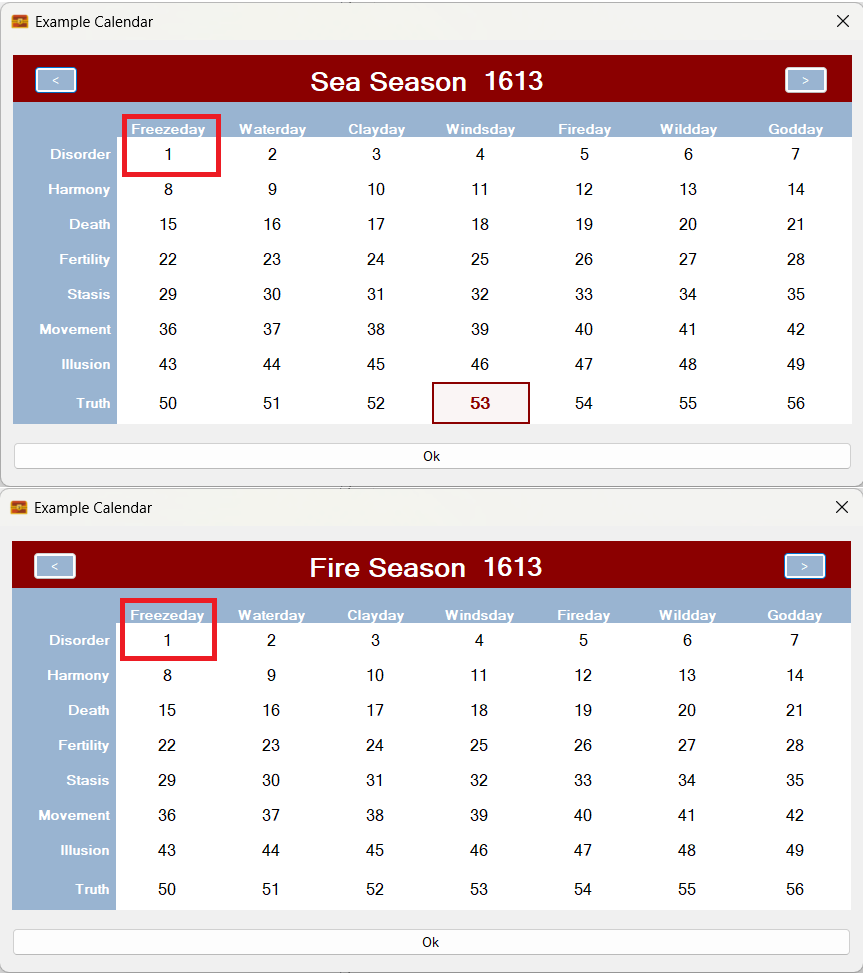 However, there used to be a limitation with the system. It couldn’t support calendars that roll their days relative to their months. For example in the Western Gregorian calendar, the 1st of February will start on a different day of the week dependent on the year.