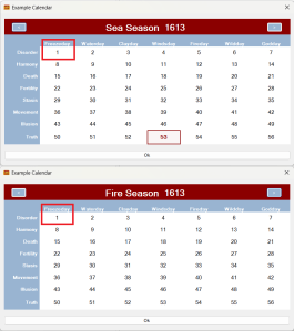 As an aside, any Time Unit or group of Time Units can be leap year enabled to allow you to create some truly unique leap years for your calendars. These are already used to great effect in the D&D calendar.