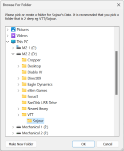 From here you can pick or create a folder for Sojour to use anywhere that your system can access!