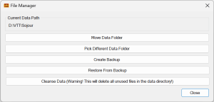This file manager lets you do many things! You can move your current data somewhere else, you can back up and restore data and you can even point Sojour to a different set of data files!