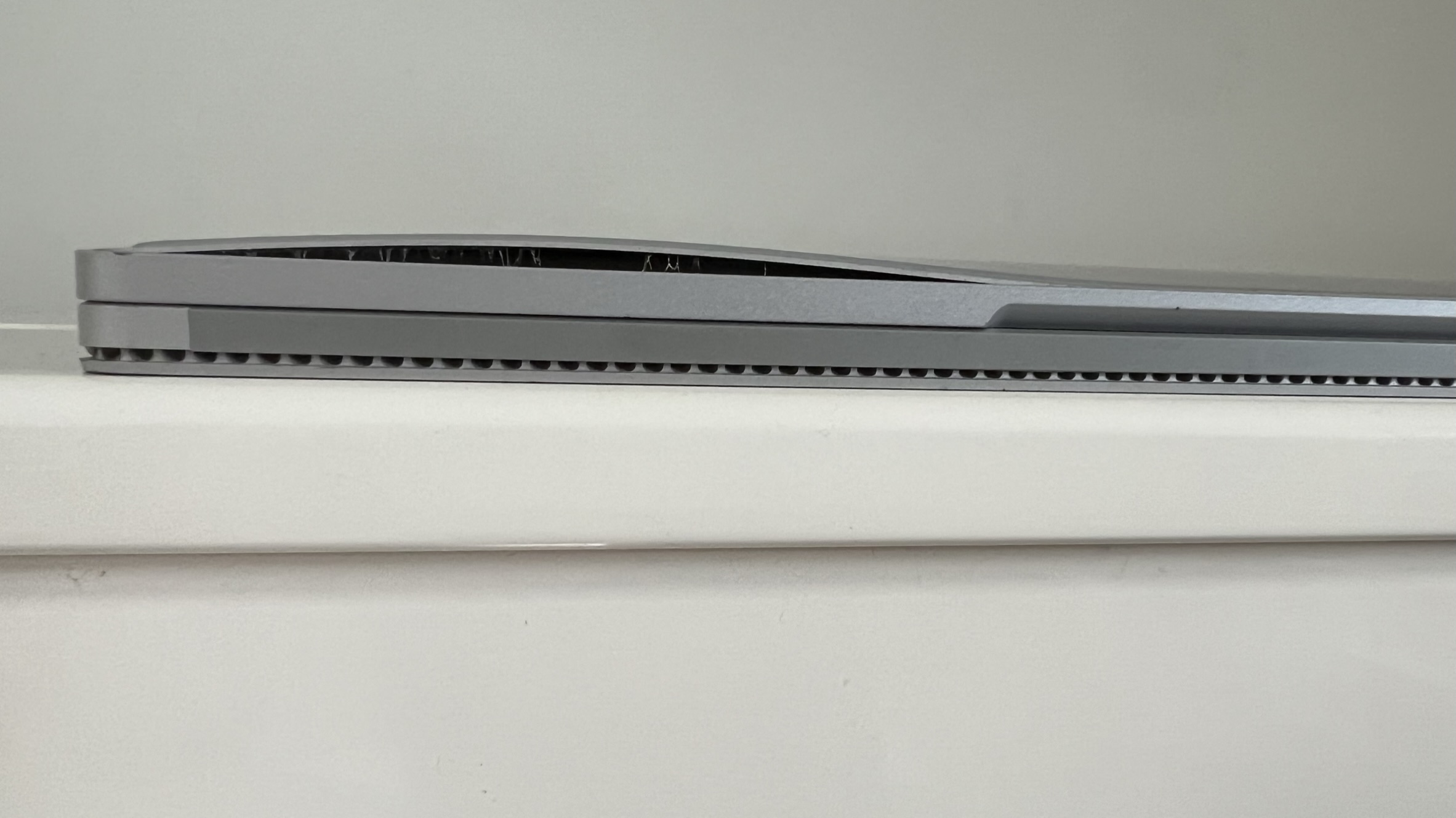 A few weeks back I noticed the laptop couldn’t sit flat on the table top anymore. It was a noticeable issue, but I couldn’t see anything physically wrong with the Surface Book, so I carried on using it.