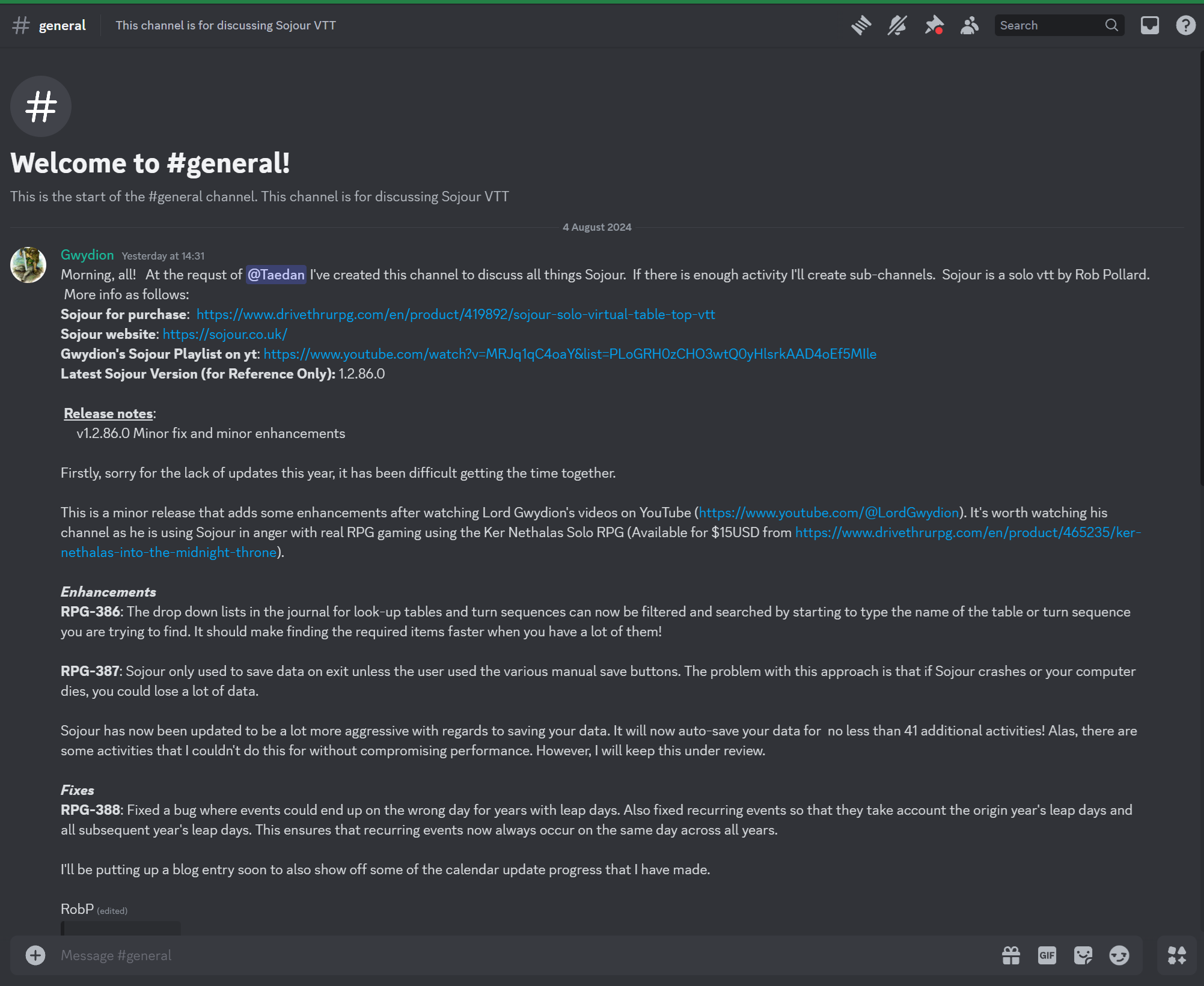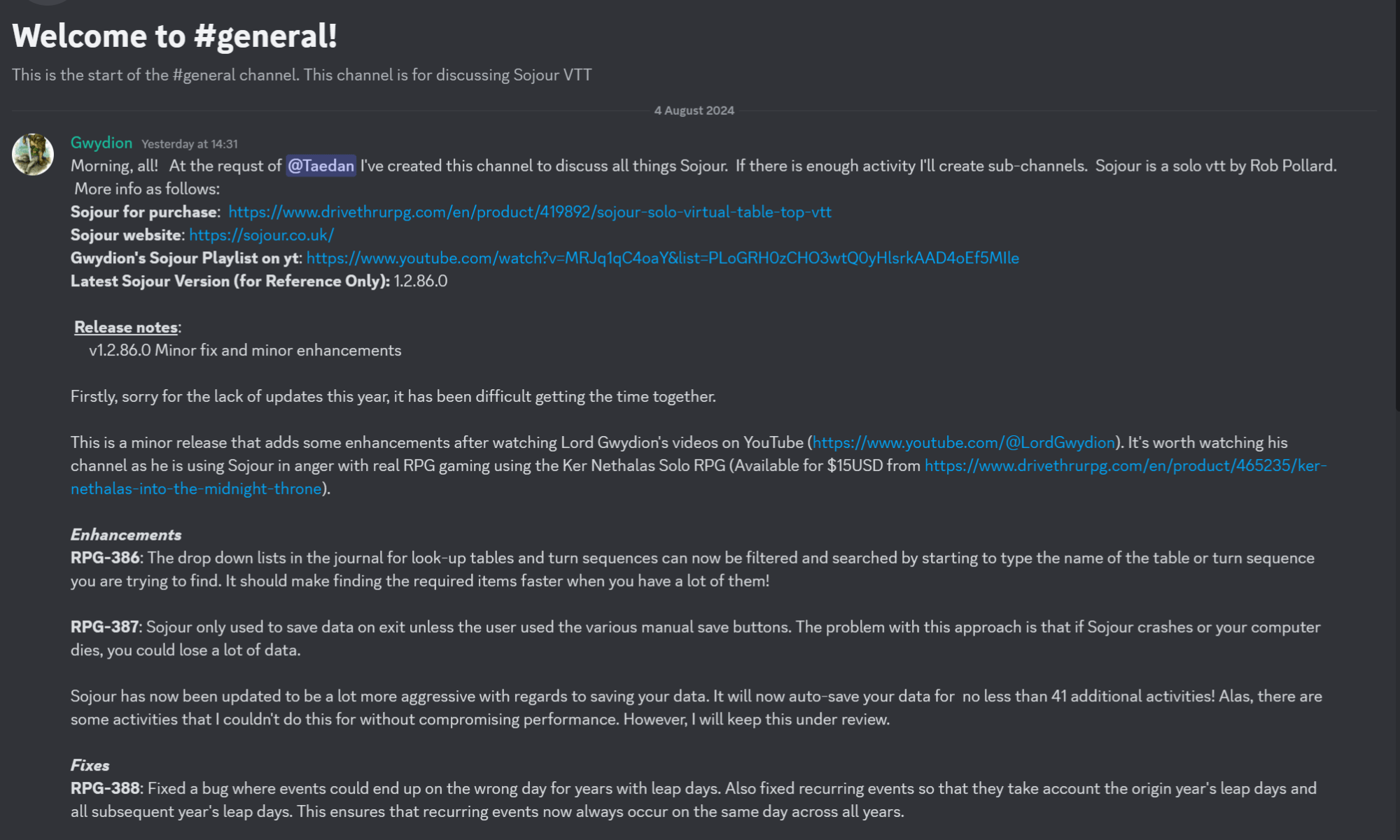 In addition work has now started on Sojour’s Calendar System V2. The intent is to add a concept of rolling entities to it. This will allow users to assign entities that naturally roll. Good examples are day names and moon phases!