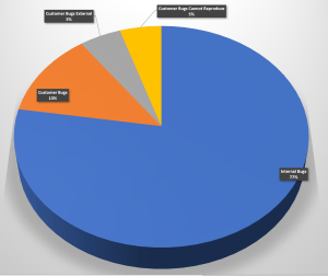 The results indicate that the internal testing effort has been reasonably effective. 23% of all internal bugs made it to the outside world, of which 43% of those are either unreproducible (normally singular reports) or the result of external factors beyond Sojour’s control (For example Microsoft releasing a broken operating system component – those bugs tend to need quick workarounds placed within Sojour).