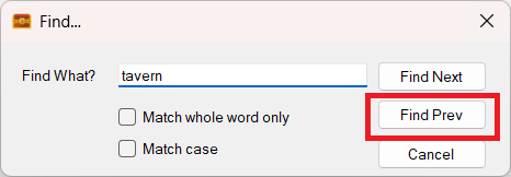Another new feature that got added is a ‘Find Prev’ button to the Journal Find window:
