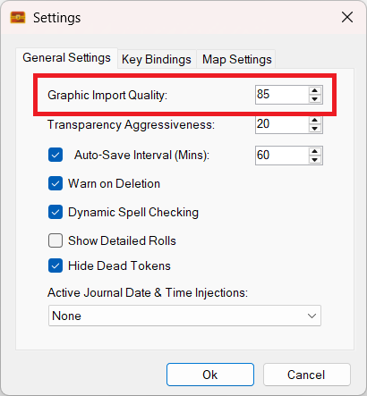 RPG-451 [Enhancement]: Sojour now compresses all images imported into it which should make the system more stable. It defaults to reducing an image’s in-memory size down to 25% of its original size! This setting can be altered under settings. In addition, Sojour now performs backups prior to all map imports to protect your data in the event of a Windows GDI crash.