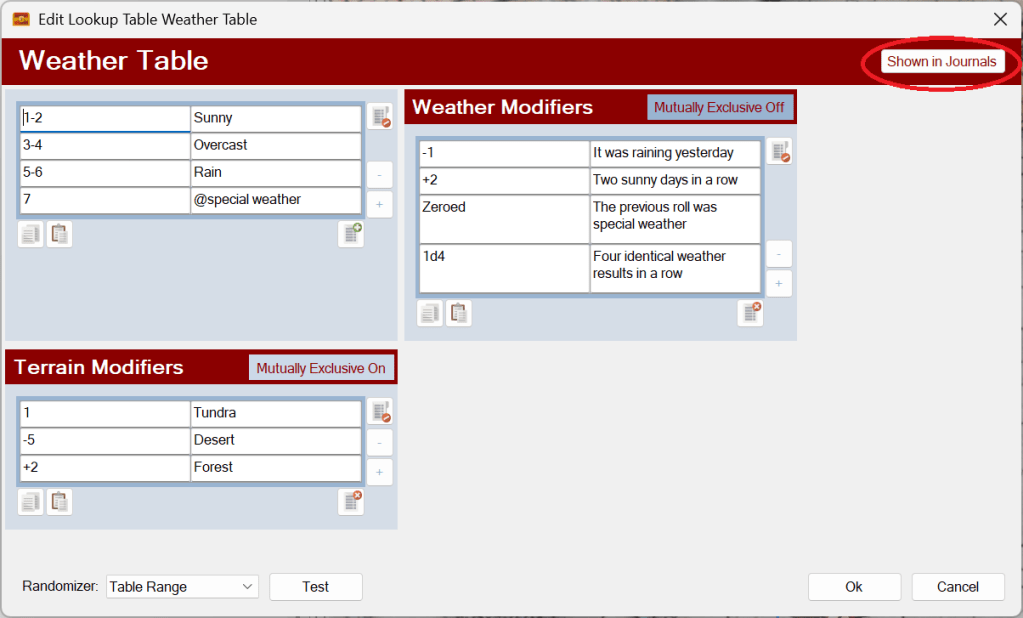 Another change added to Sojour is a new ‘Dice Roll’ field for lookup tables.