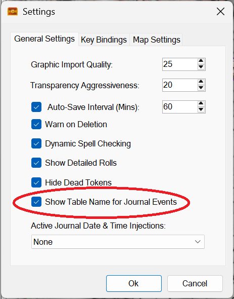 RPG-462 [Enhancement]: A new global setting has been added for event tables to toggle on or off the injection of the table name into journals.