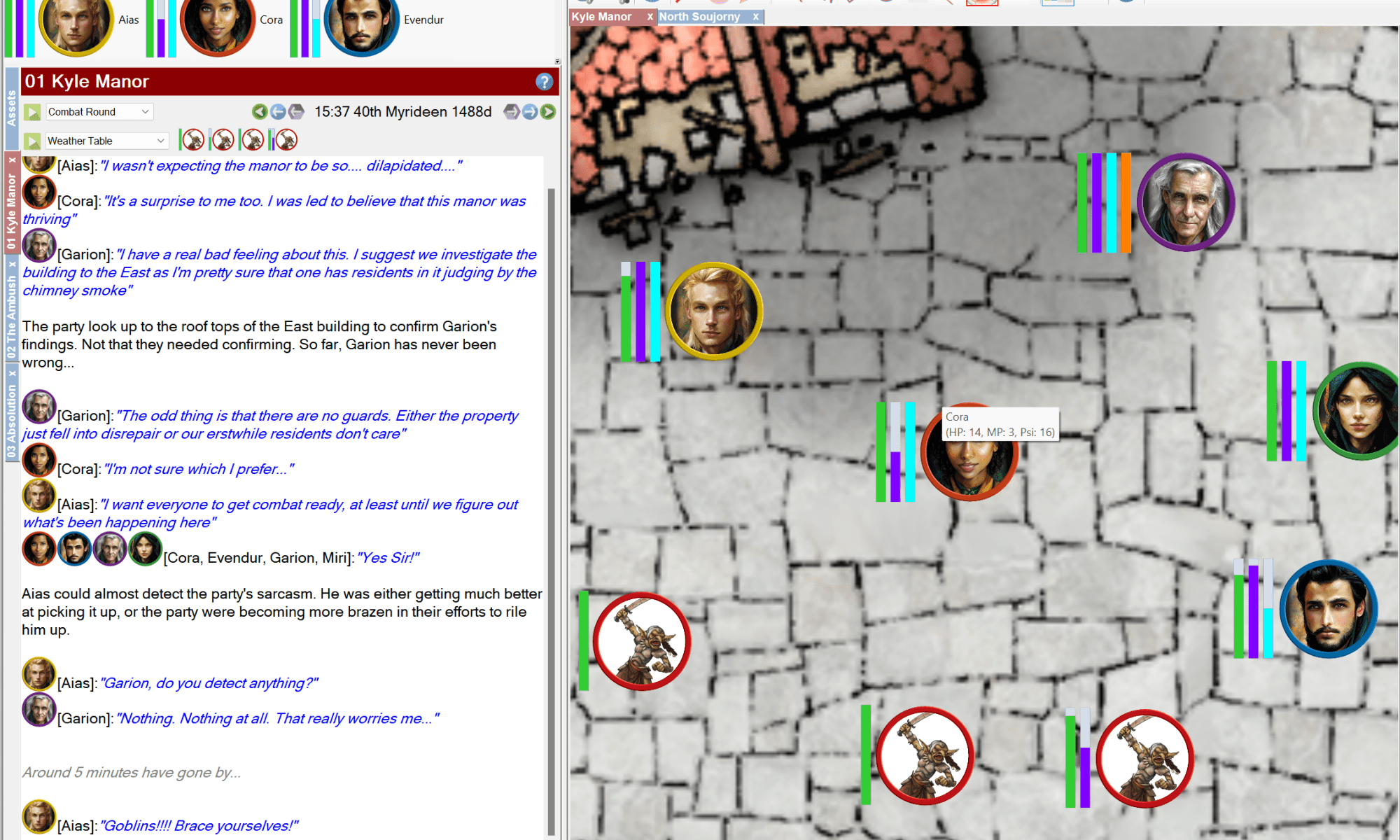 All NPCs and PCs will display health bars, one for each characteristic. These will also be visible on the map – though this will be a toggled feature under Sojour’s settings.